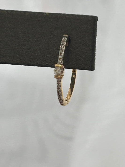 Gold Plated Hollow CZ Oblong Hoop Earrings