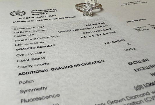 14KW 2.08ct Cushion Cut Lab Grown Diamond Engagement Ring