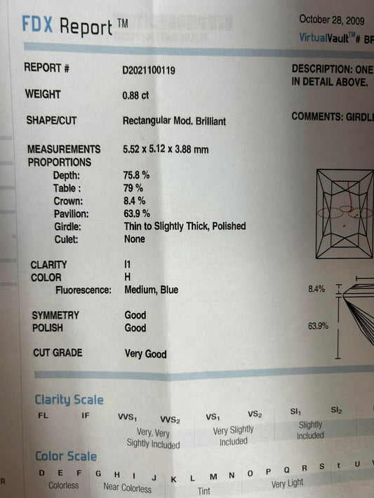 14KW Gold and Natural Diamond. Main Diamond is a 0.88ct H/I1.