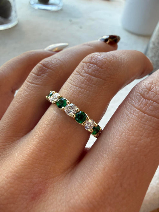 14KY 1.12ct Round LG Diamond and 0.90ct Round LG Emerald Band