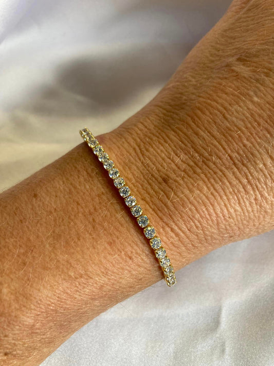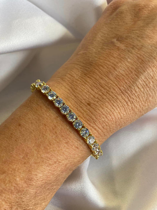 Gold Plated Heart with CZ Rod Paperclip Bracelet