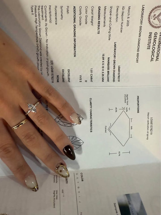 10KY 1.03ct Marquise Lab grown Diamond Engagement Ring