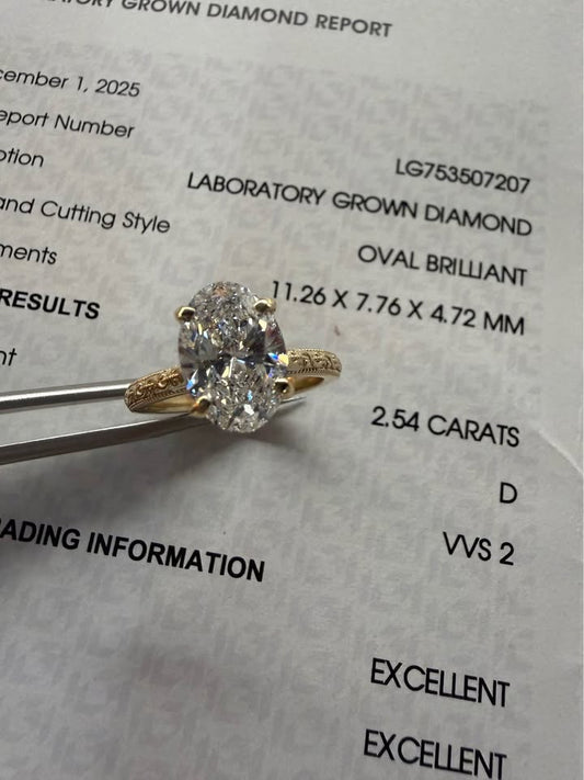 10KY 2.54ct Oval Lab Grown Diamond Engagement Ring