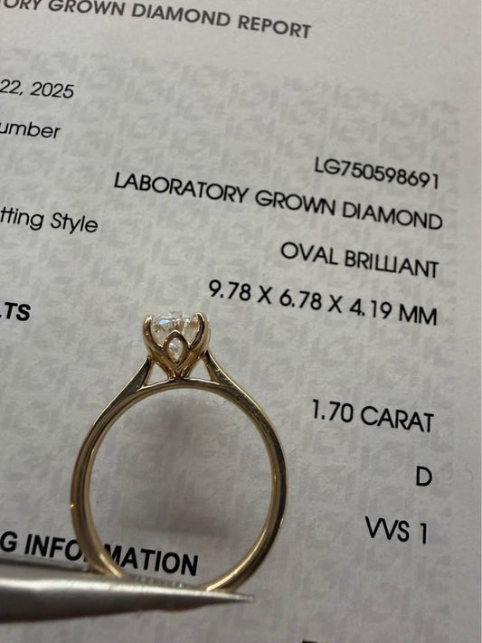 14KY 1.70ct Oval Lab Grown Diamond Engagement Ring