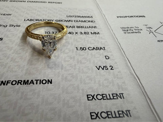10KY 1.50ct Pear Shape Lab Grown Diamond Engagement Ring