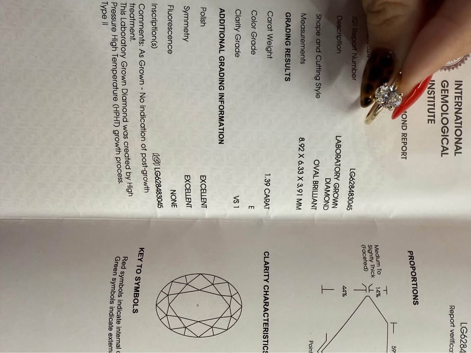 14KY 1.39ct Oval Lab Grown Diamond Engagement Ring