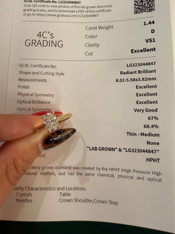 14KY 1.44ct Radiant Cut Lab Grown Diamond Engagement Ring