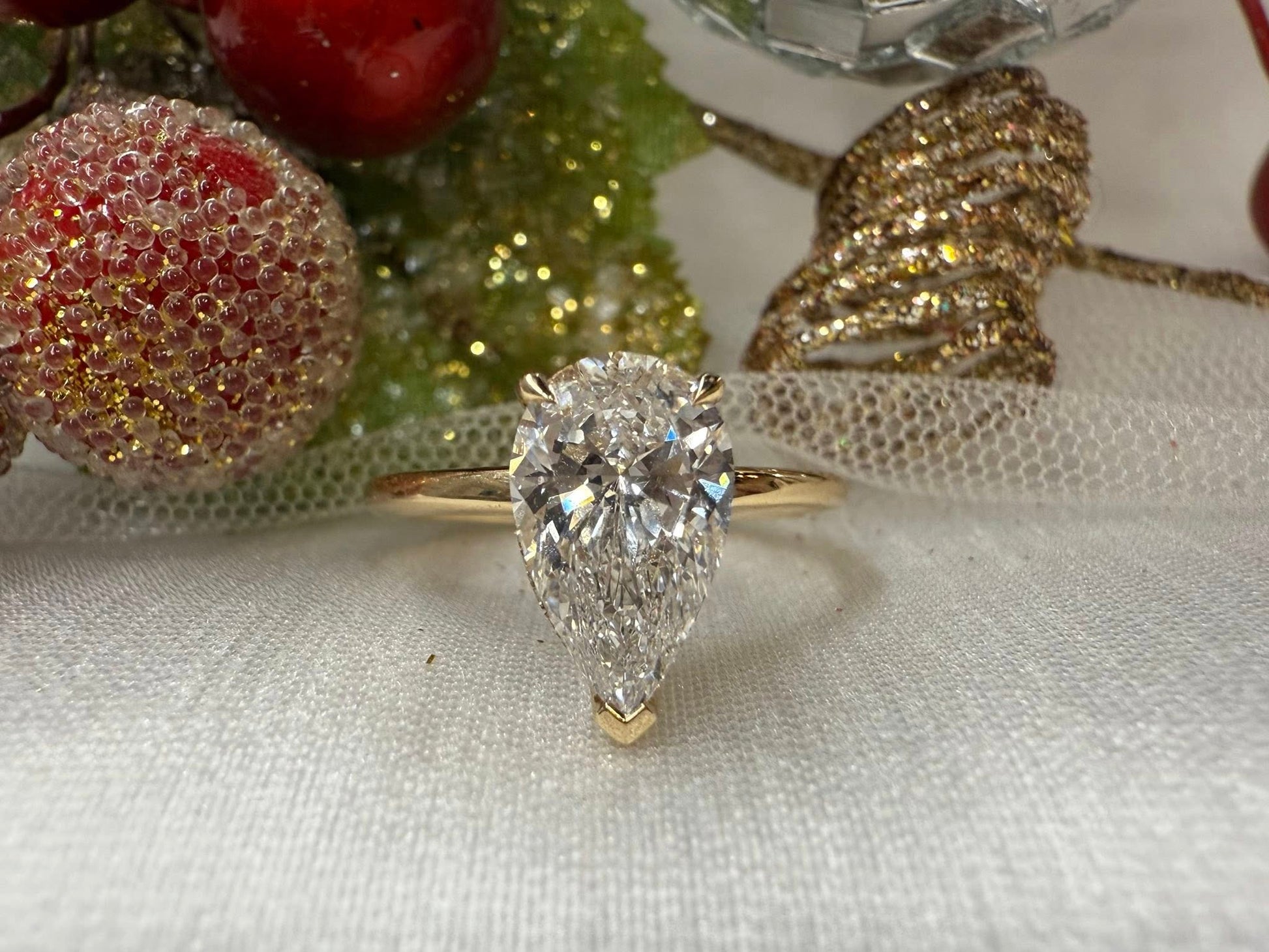 💎 14KY 2.01ct Pear Lab Grown Diamond Engagement Ring 🔥This ring is on SALE now! Originally $3188 💍 diamond report included color E Clarity VVS2 First finger sizing is free and comes with full replacement value appraisal! 📍 Available at Wiersema Jewelers in Fremont, Michigan