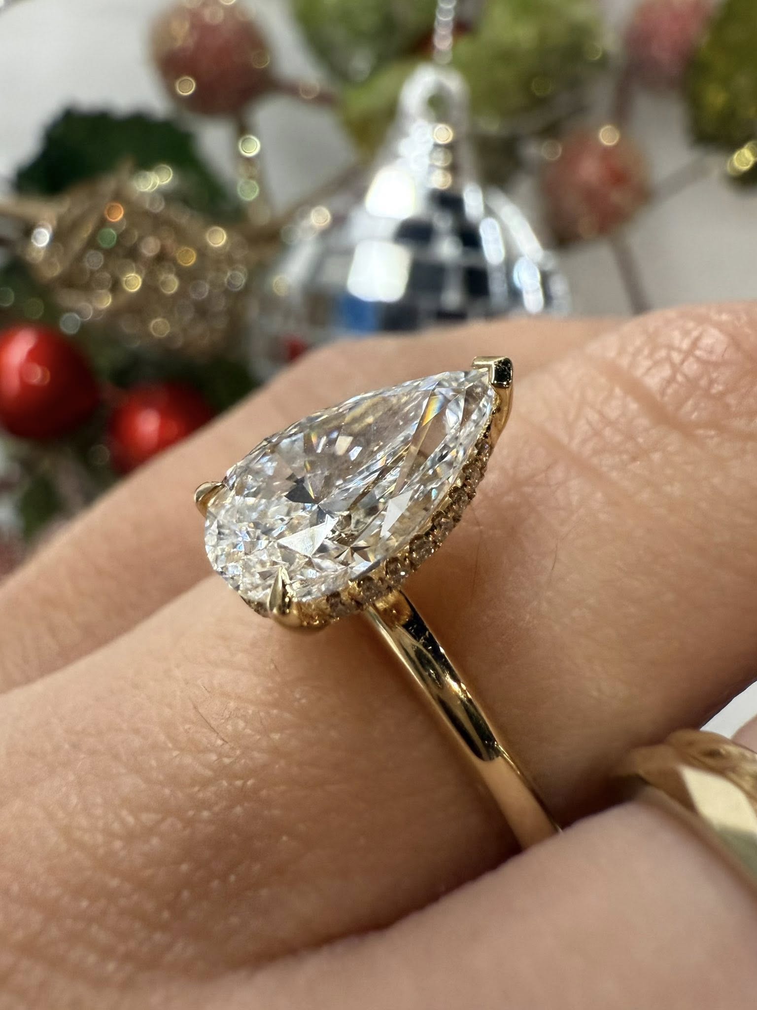 14KY 2.01ct Pear Lab Grown Diamond Engagement Ring with Hidden Halo
