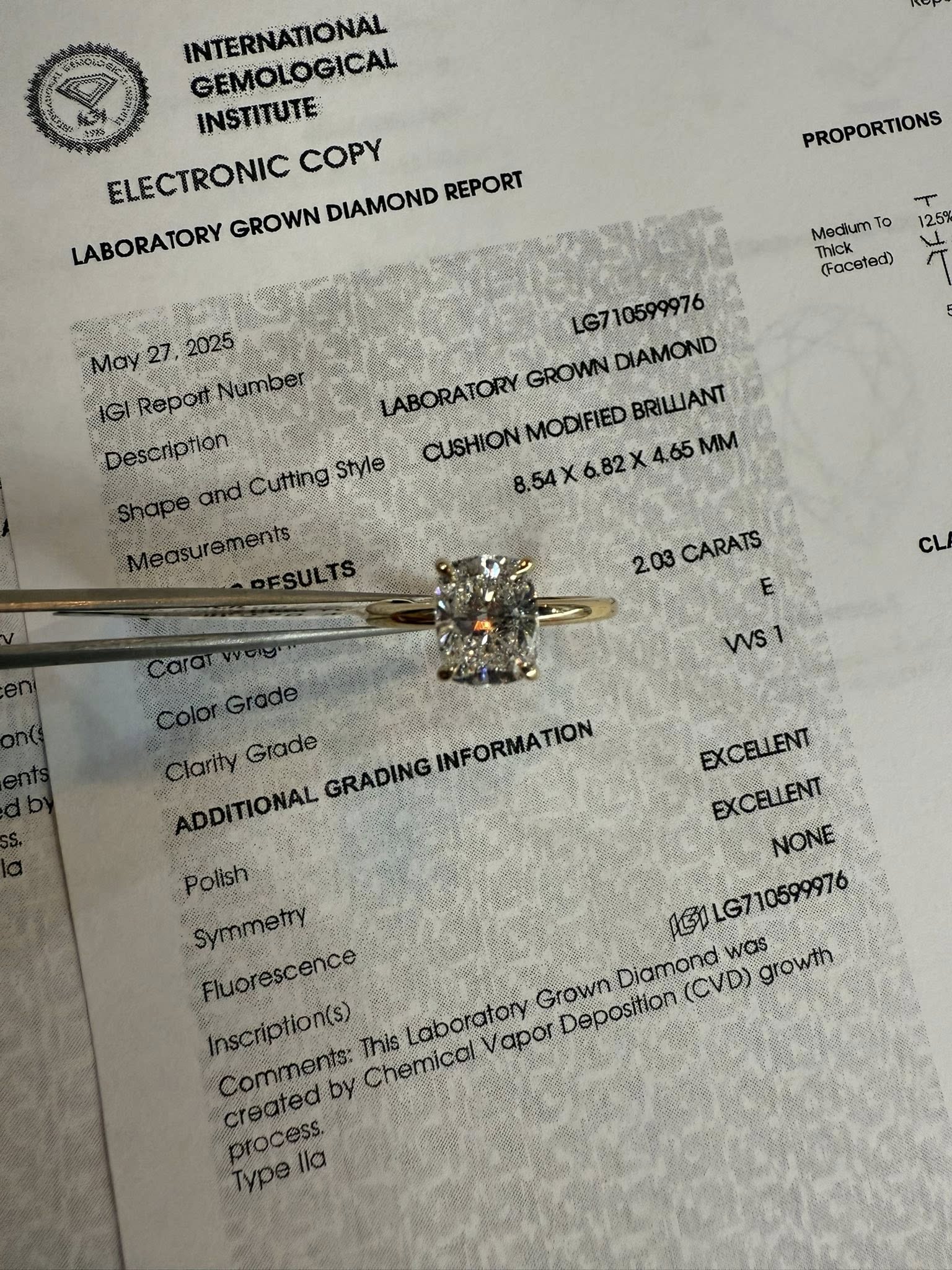 14KY 2.08ct Cushion Cut Lab Grown Diamond with Hidden Halo