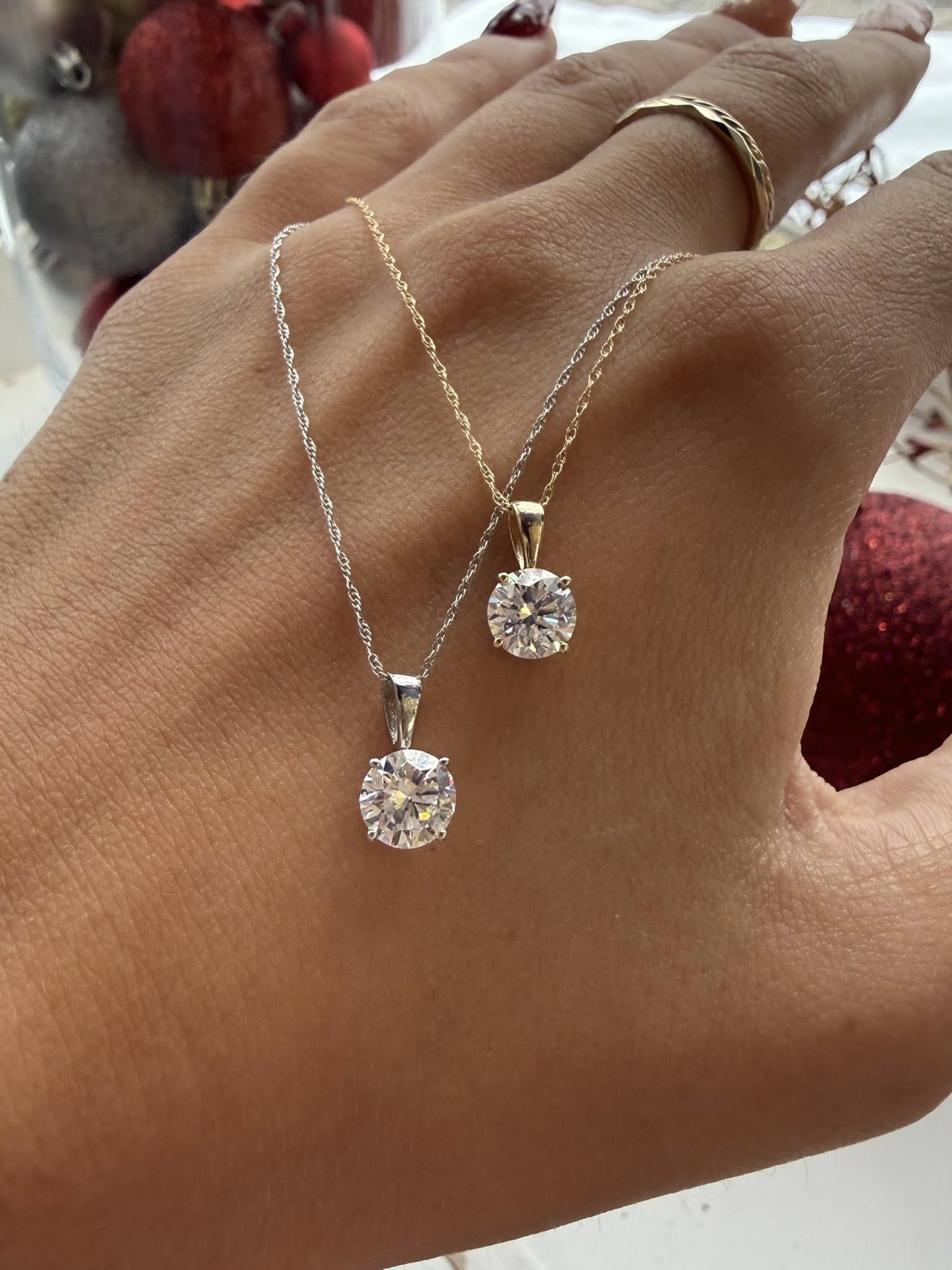 14KY and 14KW 1ct Round Lab Grown Diamond Solitaire Pendants