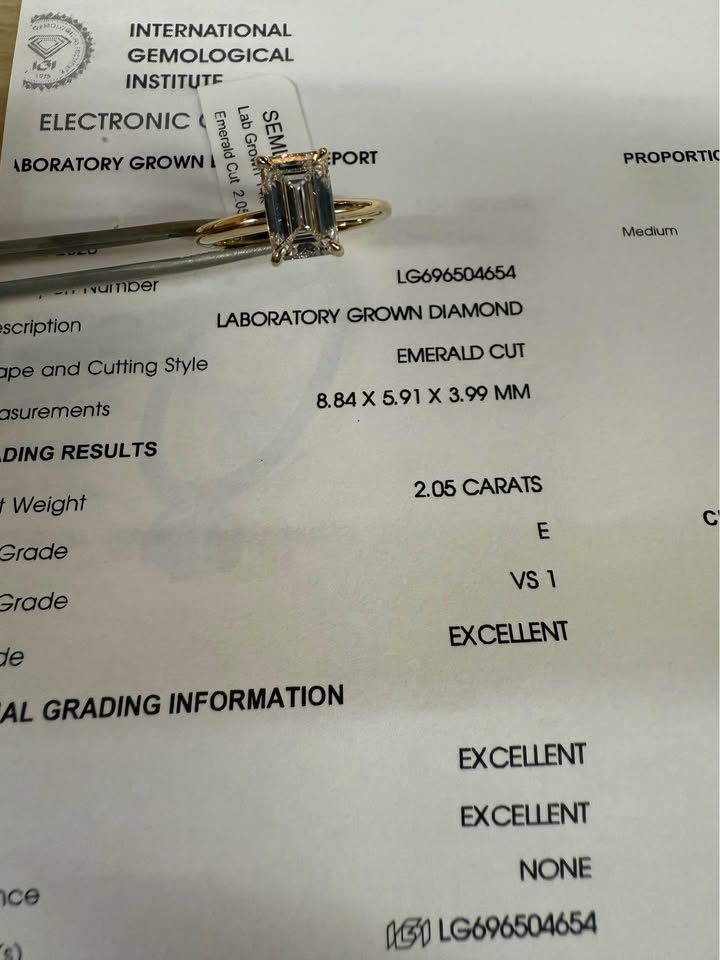 Diamond Engagement Ring 2.05ct Emerald Cut - Lab Grown Diamond